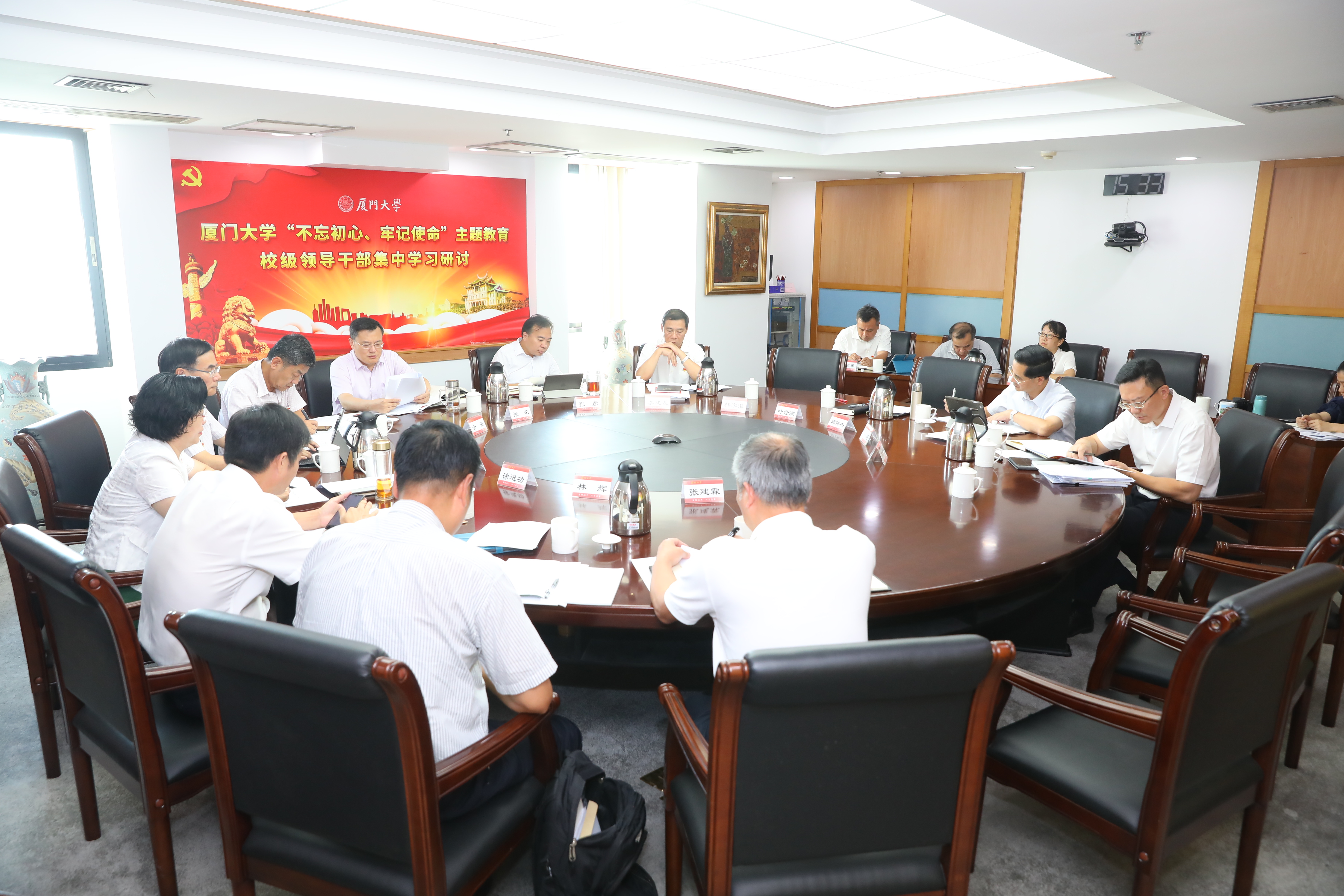 9月25日下午,厦门大学校级领导干部围绕“牢记宗旨性质”专题进行“不忘初心、牢记使命”主题教育第三次集中学习研讨。校党委副书记、副校长李建发主持。