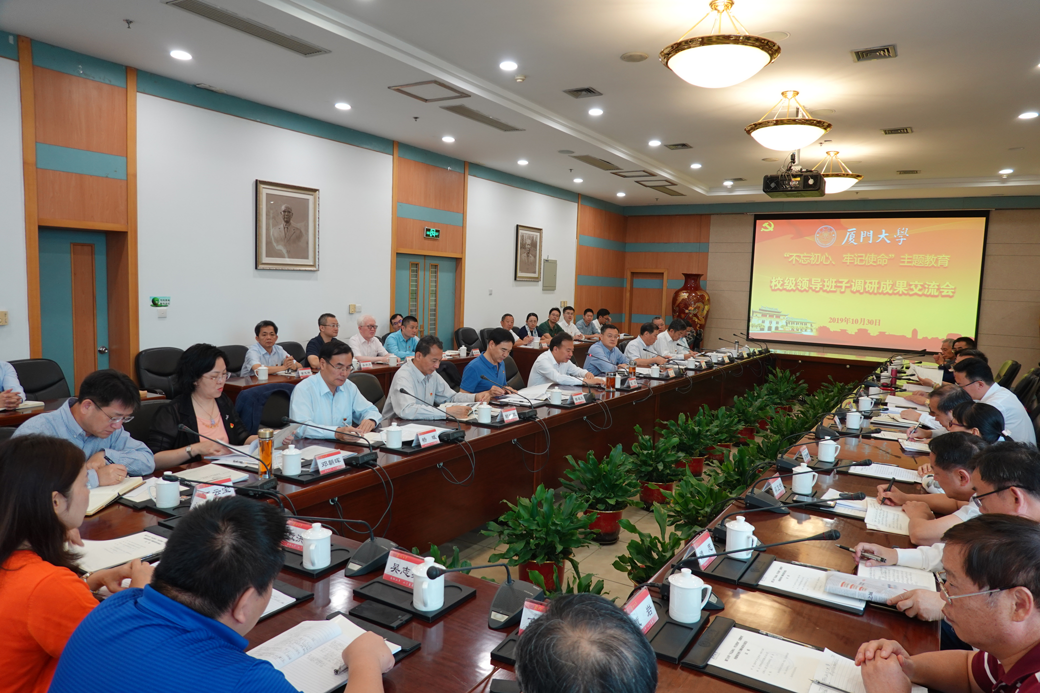 10月30日上午,厦门大学“不忘初心、牢记使命”主题教育校级领导班子成员调研成果交流会召开。校党委书记张彦,校党委副书记、校长张荣等校级领导班子成员,中央第三指导组副组长田福元,指导组成员段洪波、吴志翔出席。交流会由张彦主持。