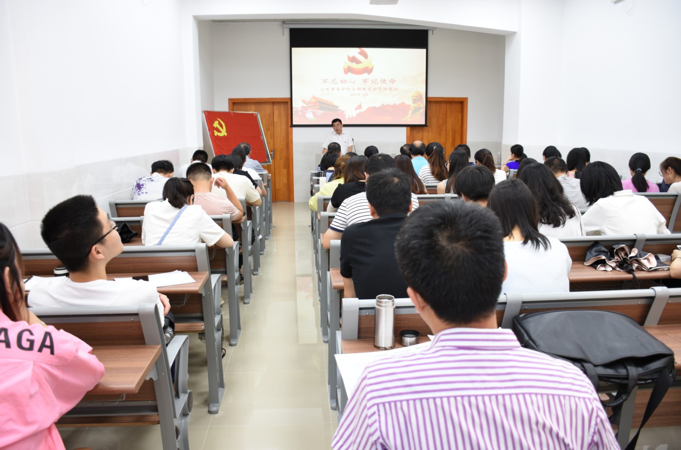 2019年9月20日公共事务学院党委举行“不忘初心、牢记使命”主题教育动员部署会。厦门大学“不忘初心、牢记使命”主题教育第三巡回指导组组长游泽民,厦门大学基层党建工作联络员林自和到场指导。学院处级领导干部、党务秘书、院办科级以上党员管理干部、全体辅导员、所辖的党支部书记、支委参加会议。院长朱仁显教授主持本场会议。