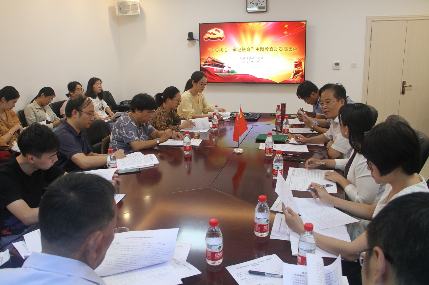 黄宝秋在动员讲话中指出,为中国人民谋幸福,为中华民族谋复兴,是中国共产党人的初心和使命,在新中国成立70周年,也是我们党在全国执政第七十个年头之际,在全党开展“不忘初心、牢记使命”主题教育是以习近平同志为核心的党中央统揽伟大斗争、伟大工程、伟大事业、伟大梦想作出的重大部署,我们要站在全党、全局的高度,深刻认识主题教育的重大意义,教育引导党员师生大力发扬革命精神和斗争精神,筑牢信仰之基,补足精神之钙,把稳思想之舵。数学是夯实世界科技强国建设的重要基石之一,近年来党中央、国家从战略层面出台了一系列加强数学等基础学科的重大举措,在这样的背景下,我们要站在为党育人、为国育才的高度,从为科技强国、数学强国建设提供强大人才支撑和智力支持的高度充分认识主题教育的重大意义,教育引导党员师生守初心,担使命,做到求真学问、练真本领、知行合一、格物致知,把小我融入大我,强化爱国情、强国志、报国行,以每一位党员的实际行动为“四个伟大”添砖加瓦。数学科学学院具有悠久的办学历史和优良的教育传统,近百年来学科建设取得不断进步,为党和国家培养输送了以陈景润院士为代表的一大批优秀人才,在新时代,我们要站在建设一流学科、培养一流人才的高度,深刻认识主题教育对推动党建科学化、引领“双一流”建设的重大意义,敢于正视、着力解决党的建设和办学治院中存在的突出问题,坚持立德树人,增强定力信心,进一步弘扬陈景润的科研报国情怀和勇攀高峰的科学精神,只争朝夕,奋发有为,努力培养出更多陈景润式的新一代代表性人物,早日将数学学科建设成为世界一流学科。