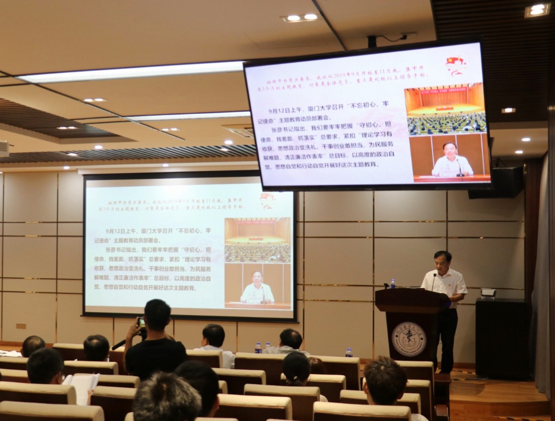 他最后强调,开展“不忘初心、牢记使命”主题教育,是全党的一项重大政治任务,学院要坚决贯彻落实校党委的决策部署和工作要求。在厦门大学“双一流”建设进程中,学院将不忘初心再出发、牢记使命勇担当,展做为、做贡献、树形象,以优异成绩向百年厦大献礼、向新中国70周年华诞献礼。