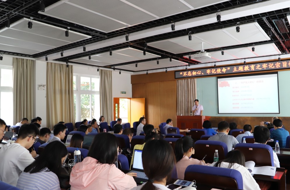 10月15日上午,法学院在B138报告厅举行 “不忘初心、牢记使命”主题教育集中学习活动,本次集中学习的主题是“牢记宗旨性质”。学院党委书记许和山为全院师生代表作题为“共产党人初心的理论源泉、实践价值和时代性”的讲座。讲座由法学院党委副书记郭锦星主持。学校主题学习教育活动第四巡回指导组组长司卓亚,副组长许美霞,院党政领导班子成员出席本次活动。
