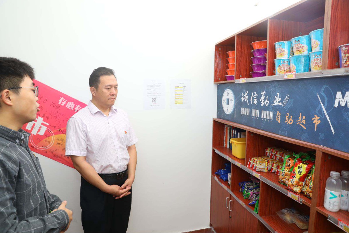 10月18日上午,中央第三指导组成员、中央组织部公务员二局二级巡视员李涛同志莅临材料学院勤业诚信自助超市,调研和指导相关工作。中央第三指导组成员、教育部社会科学司社会科学科研处二级调研员段洪波,校党委党建办主任、组织部副部长廖志丹,学生处副处长袁国柱、陈泗林以及材料学院相关领导陪同考察。
