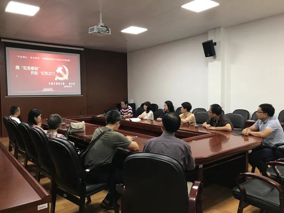 2019年10月23日中午,图书馆本部分馆党支部在图书馆总馆一楼会议室,开展了“不忘初心、牢记使命”主题教育专题党课学习活动。党支部书记杨小利同志围绕贯彻习近平新时代中国特色社会主义思想,讲授题为《用“红色密码”开启“红色之门”》的专题党课。
