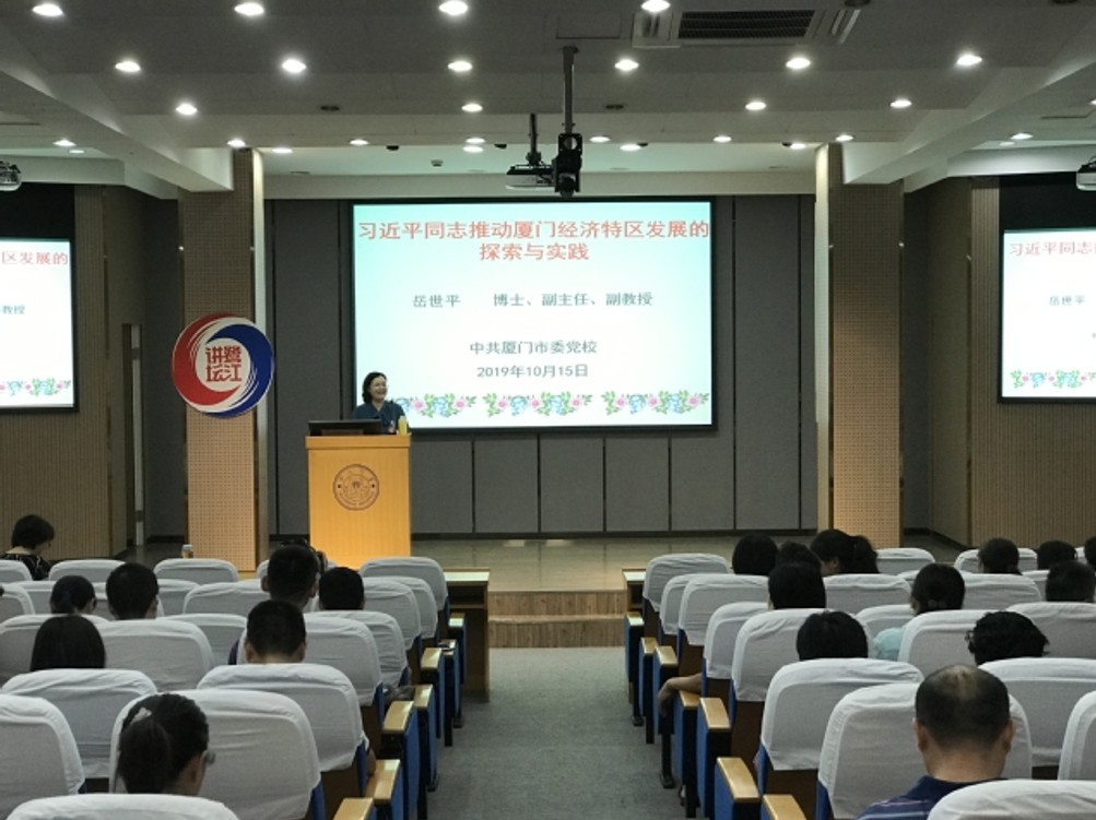 为进一步提升教职员工的政治理论学习水平,推动“不忘初心、牢记使命”主题教育扎实开展,2019年10月15日下午,图书信息档案党委邀请厦门市委党校公共管理教研部副主任岳世平博士,做题为《习近平同志推动厦门经济特区发展的探索与实践》的专题讲座,图书信息档案党委委员、档案馆馆长石慧霞主持本次政治理论学习活动。