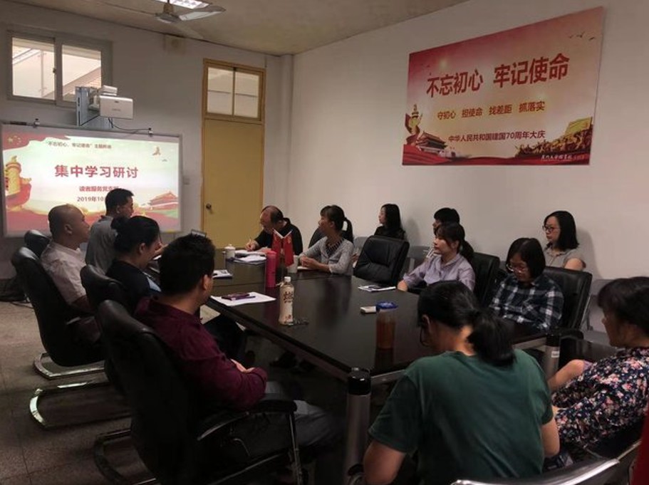 根据图书信息档案党委的部署与要求,10月24日上午,图书馆读者服务党支部在图书馆一楼“党员之家”围绕“坚定理想信念”、“牢记宗旨性质”两个专题,开展“不忘初心、牢记使命”主题教育的第二次面对面集中学习研讨。