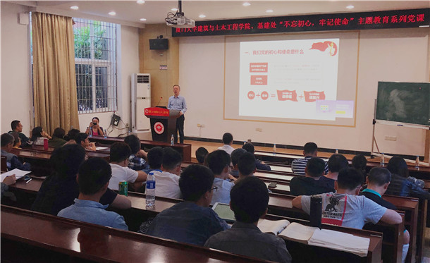 11月6日下午,在建筑学院报告厅,来自基建处党支部、土木工程系教工党支部、土木工程系研究生第二党支部等五十多名师生济济一堂,聆听校长助理兼基建处处长张建霖以《不忘初心、牢记使命、勇于担当,做一位新时代的建设者》为主题的专题党课。这是根据学校党委“不忘初心、牢记使命”主题教育的部署要求开展的支部共建“固定党日+”活动。