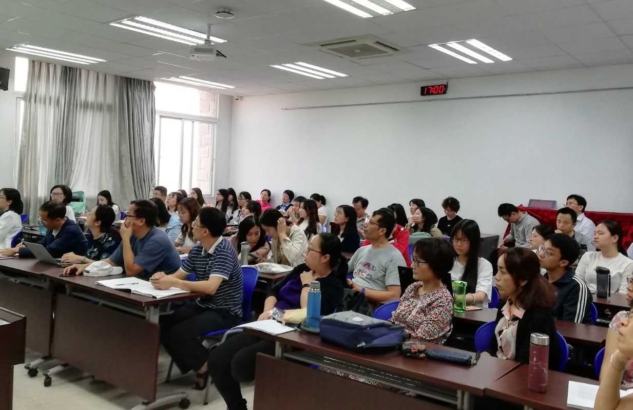 11月4日下午,外文学院英语系教工党支部于德贞楼515教室开展以“今后为事业发展贡献什么”为主题的“固定党日+”活动。此次活动结合在“不忘初心、牢记使命”主题教育中落实“为师生办一件实事好事”的要求,特邀支部党员、英语系教授胡兆云同志做了一场题为“翻译须站稳政治立场和爱国立场”的讲座,讲座紧扣时代主题,贴近外文师生的学习与研究,吸引了大批党内外师生到场学习,现场座无虚席。