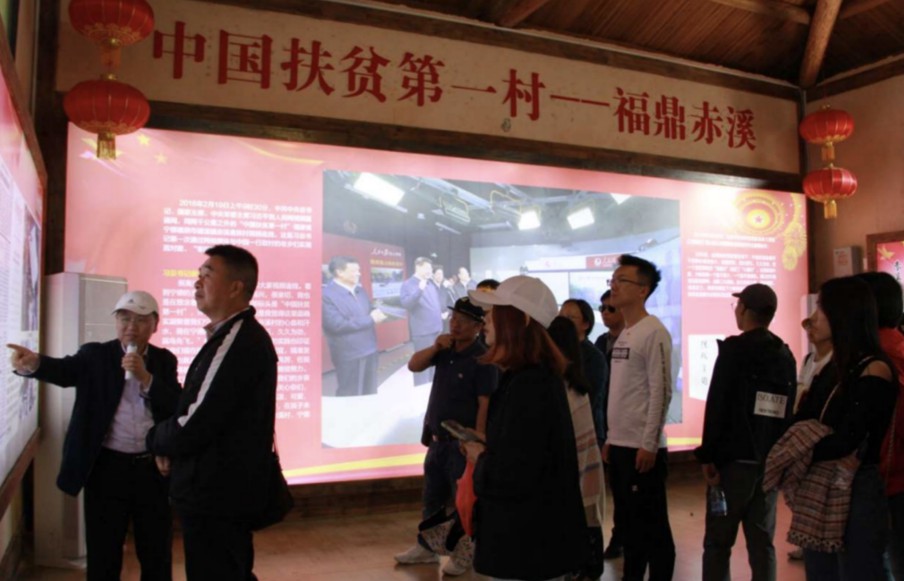 参观当中,师生们看到了赤溪村的扶贫30年历程中各级党委领导和村民们为了脱贫所作出的各种努力,看到了赤溪村的年轻人利用互联网建设家乡——通过电商平台让赤溪村的特产走出去,看到了村民们为了幸福的生活而努力奋斗……