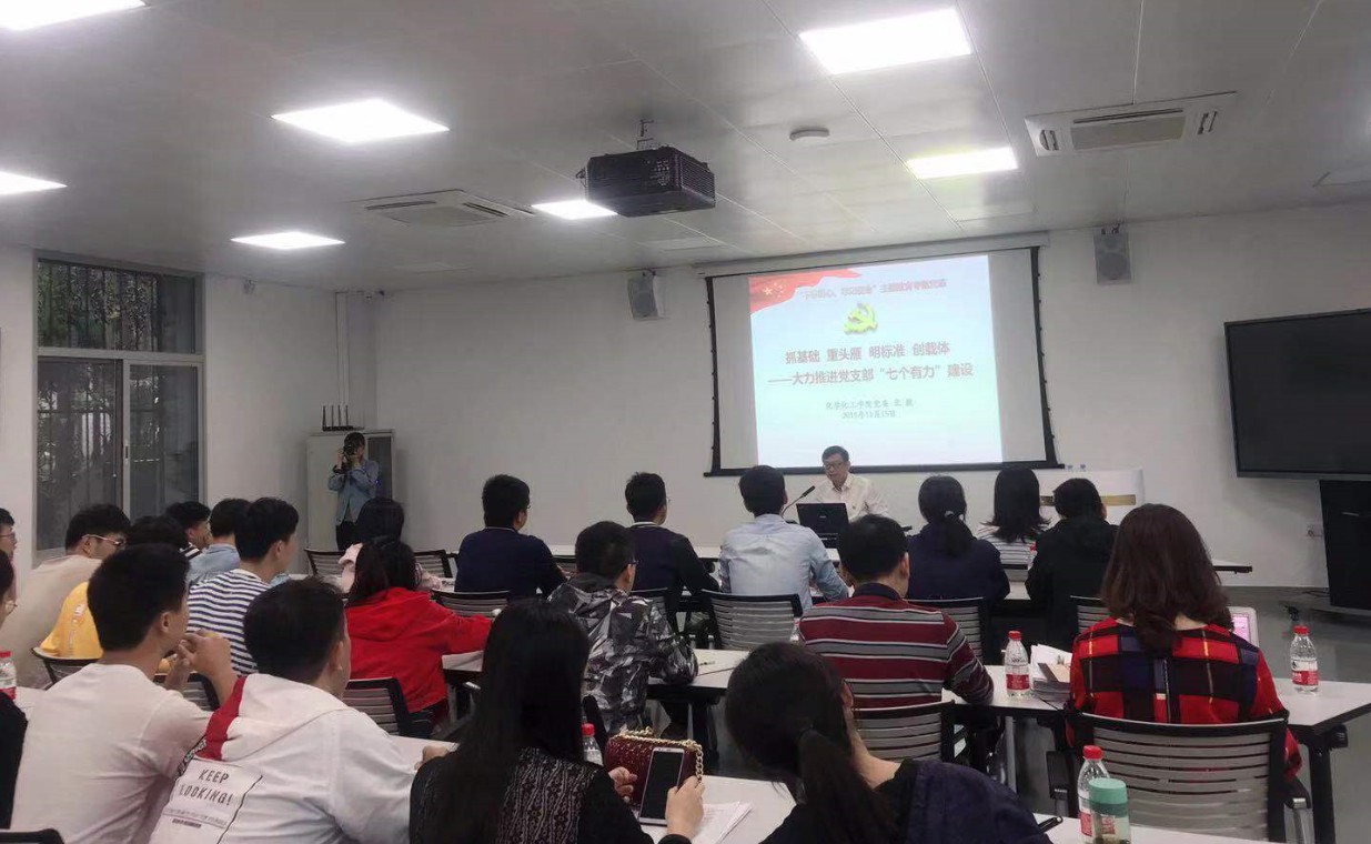 根据 “不忘初心、牢记使命”主题教育实施方案安排,11月15日下午,化学化工学院党委书记宋毅在同安二106教室作《抓基础 重头雁 明标准 创载体——大力推进党支部“七个有力”建设》专题党课,学院全体师生党支部书记参加。