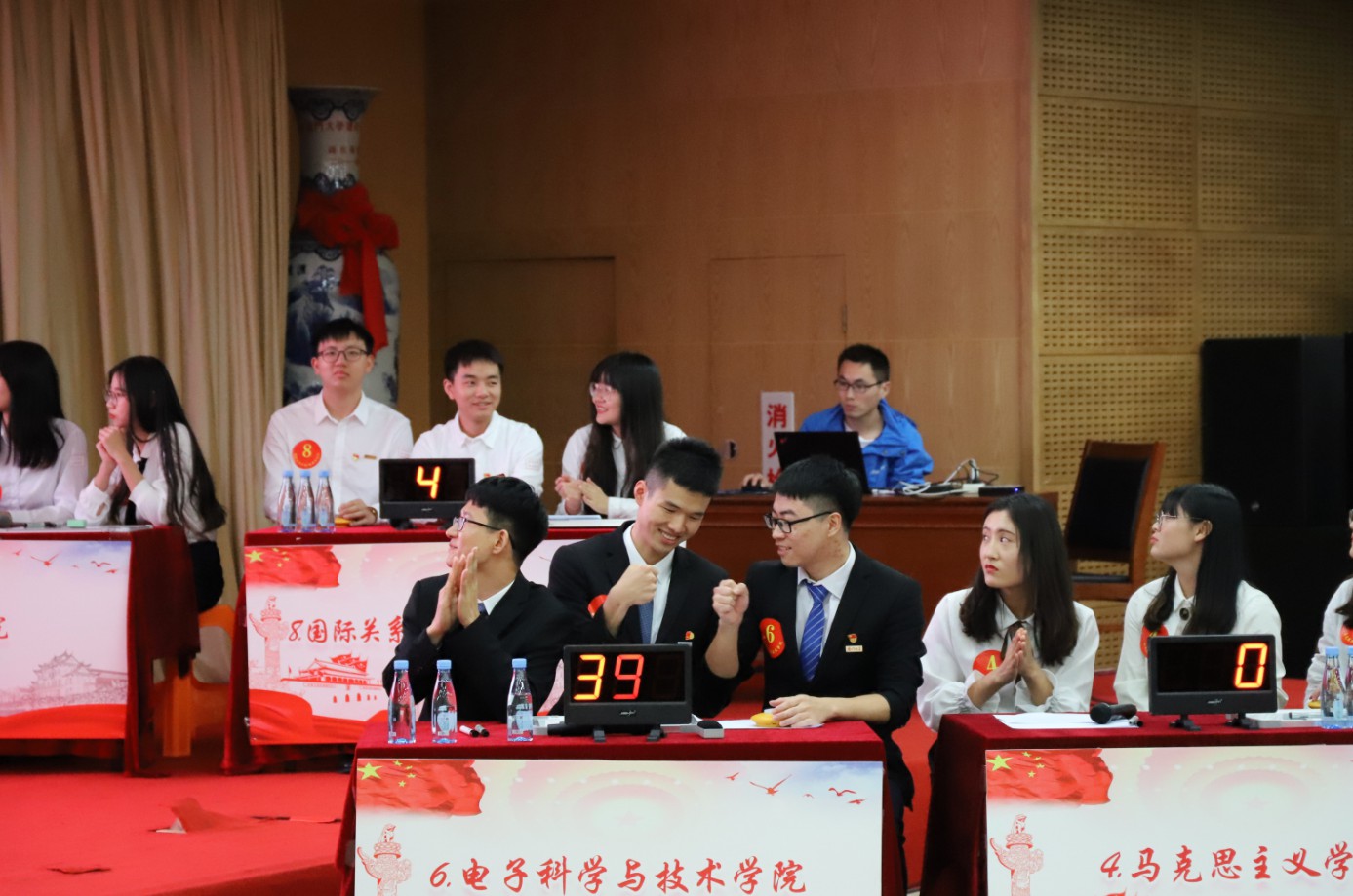 成绩的取得,与队员们扎扎实实地学习密不可分,与学院党委切实加强学习型党组织建设密不可分。为深入贯彻落实习近平总书记关于加强学习、建设学习大国重要指示精神,电子科学与技术学院党委从今年5月开始,在全院师生党员中间开展“好好学‘习’、天天充‘电’”活动,教育引导广大党员求学问、练本领、长才干,坚定理论信念,认真干事创业,形成了浓厚的学习氛围,涌现出一批热爱学习的支部和党员。参加本次知识竞赛的“芯”青年代表队三名队员都是“学习充电”活动中的学习达人。在积极备赛的过程中,学院党委书记吴国瑛、副书记方银水、辅导员刘锦锗、林燕红等多次给予指导,共同学习,充分展现了全院上下的崇尚学习、加强学习新风貌、新态势。