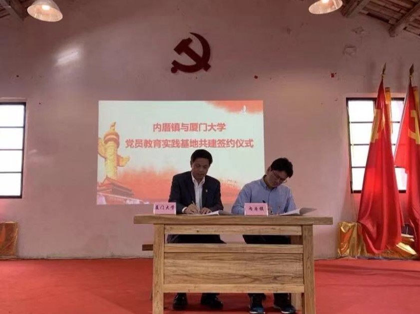 为加强校地合作,推动校办企业党建工作和乡村党校建设,11月27日上午,厦门大学资产经营有限公司党委与内厝镇党委举行校地党建共建活动签约仪式。党委书记郑建华、厦门大学城乡规划设计研究院总经理郑灵飞、厦门建南文化创意公司总经理林鸿飞、厦门建南环境艺术有限公司总经理助理陈四民、内厝镇党委书记林生海、村镇党员干部、市委讲师团等参加活动。