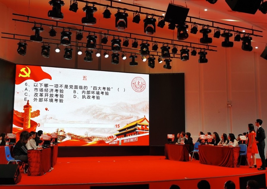 本次竞赛分为必答题、风险题和抢答题,题目内容涵盖了党的基本理论知识、习近平总书记关于“不忘初心、牢记使命”主题教育重要论述、十九大和十九届四中全会精神、“学习强国”等。在比赛中,各党支部参赛队员着装整洁、精神饱满、沉着稳健,以丰富的知识储备从容应答,赢得了在场师生的阵阵掌声,特别是在抢答环节,各支队伍都不甘示弱、积极抢答,展现了党员们斗志昂扬的精神风貌。为增强比赛的参与性,在现场观众互动答题环节,场下师生积极踊跃答题,现场气氛热烈。经过激烈的角逐,研究生第六党支部脱颖而出,斩获一等奖;研究生第一党支部、第五党支部获得二等奖;研究生第二党支部、第三党支部和第四党支部获得三等奖;研究生第七党支部和本科生党支部获得优秀奖。