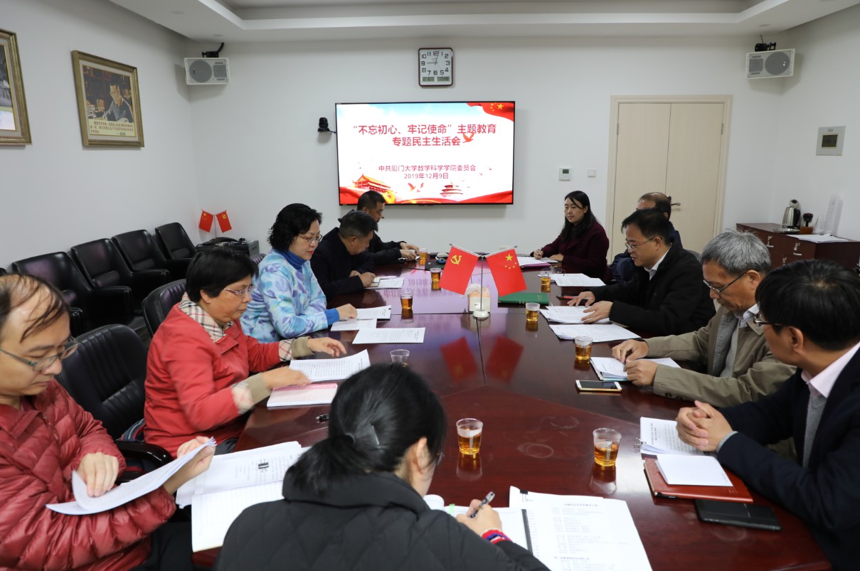 按照校党委关于召开“不忘初心、牢记使命”专题民主生活会的统一部署和要求,12月9日上午,数学科学学院领导班子召开主题教育专题民主生活会。会议聚焦“不忘初心、牢记使命”主题,紧扣学习贯彻习近平新时代中国特色社会主义思想主线,围绕理论学习有收获、思想政治受洗礼、干事创业敢担当、为民服务解难题、清正廉洁作表率的目标,对标对表习近平总书记关于“四个对照”、“四个找一找”的要求,盘点收获、检视问题、深刻剖析,着力解决党内存在的违背初心和使命的各种问题,力戒形式主义、官僚主义,推动班子及成员进一步增强“四个意识”、坚定“四个自信”、做到“两个维护”,更加履职尽责、担当作为,凝聚合力、团结奋进,用初心与使命引领、推动学院党的建设和各项事业迈上新台阶。校党委常委、副校长邓朝晖,校第四巡回指导组组长司卓亚,校纪委委员、新闻传播学院党委书记郑树东参加会议并作点评发言,部门工会主席,系主任、科级干部代表列席会议。学院党委书记黄宝秋主持会议。