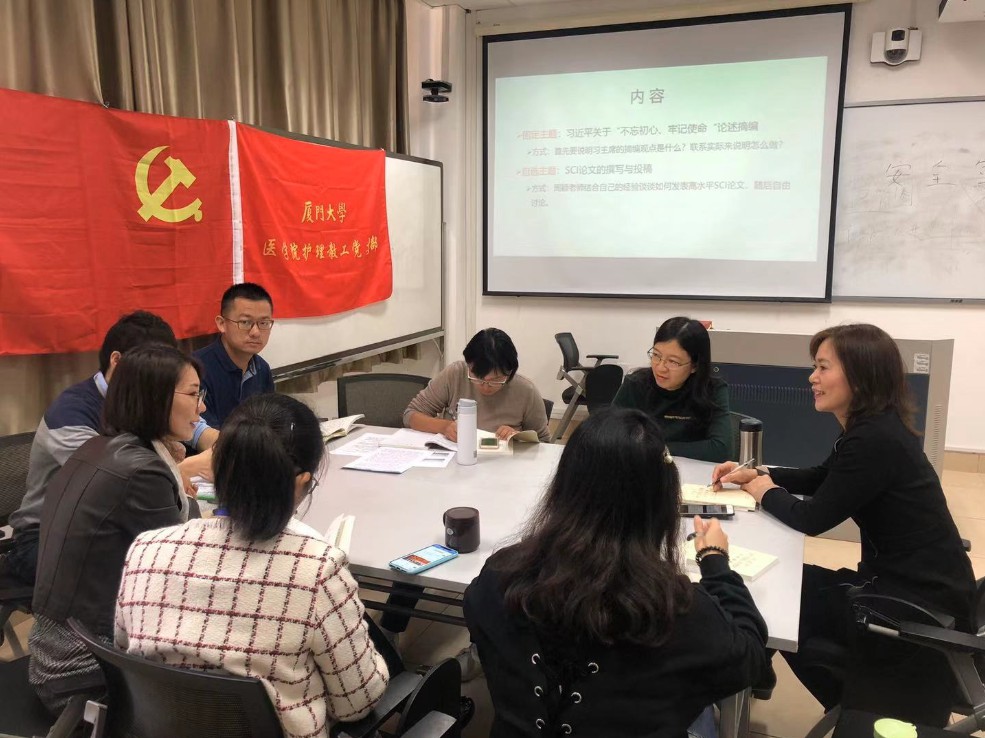 本次活动分为固定主题和自选主题。固定主题由支部成员利用翻转课堂的方式通过《学习习近平关于“不忘初心、牢记使命”论述摘编》分章节的学习,分析了习主席摘编的观点,联系自己的工作实际进行了讨论。紧接着,大家通过“雨课堂”进行了学习成果测试,巩固了学习的效果。固定党日活动使用“雨课堂”可以有效地将学习教育、交流研讨、答题、心得体会等转至线上,实现了高效便捷的自主学习与互动学习,调动了教工党员参与的积极性和主动性,推动了“不忘初心、牢记使命”主题教育的顺利开展。自选主题由大数据国家研究院周颖老师进行如何发表SCI论文进行展开.自选主题结合各个主讲老师的工作背景和支部老师们的实际需要进行选题,讲授的内容是经验的分享也是资源的互通,在理论学习的同时也加强了支部老师们的信息资源互通联系,紧密团结了支部成员,让大家能够共同学习、共同进步。