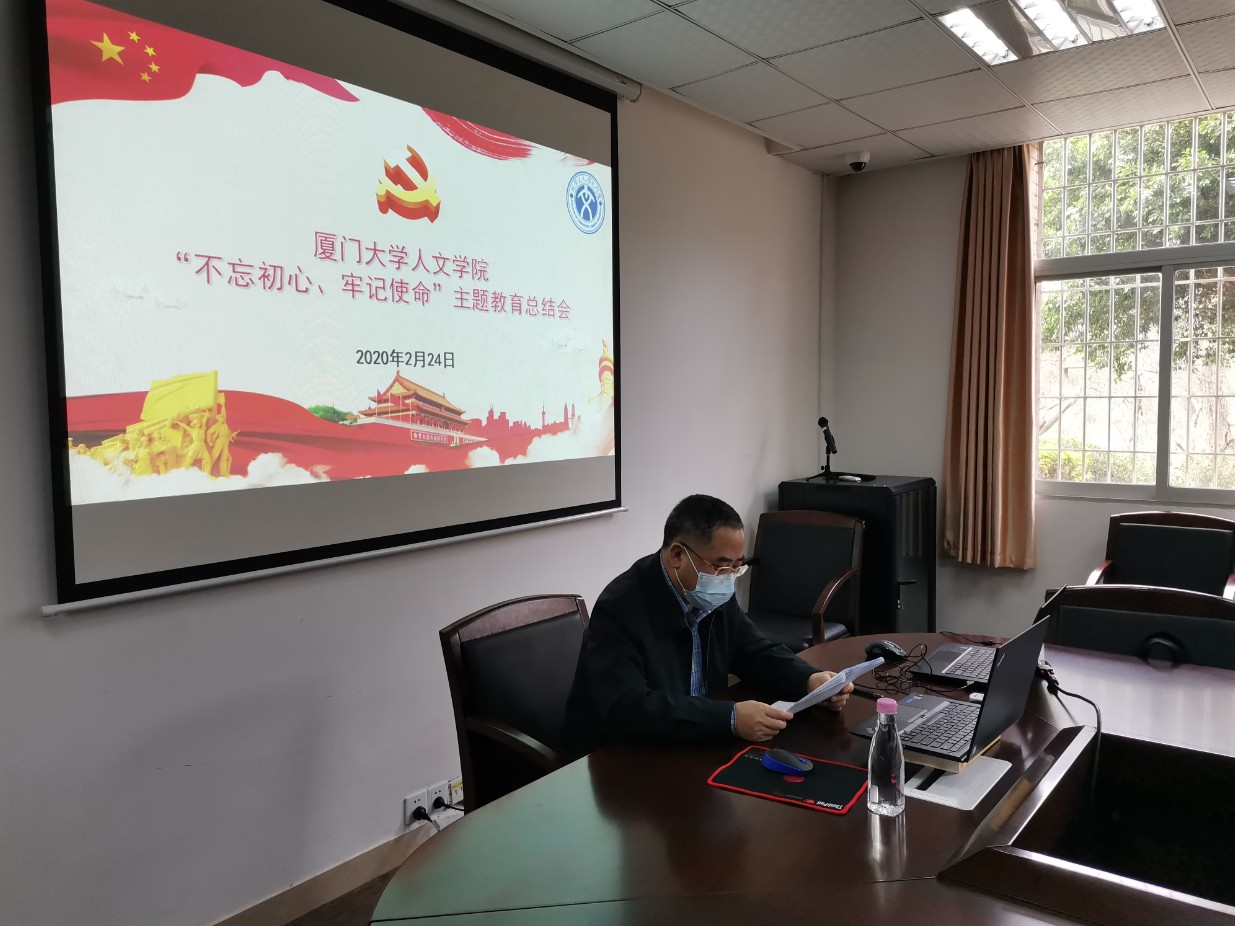 2月24日,人文学院召开“不忘初心、牢记使命”主题教育总结视频会议,学院党委书记王炳华做人文学院“不忘初心、牢记使命”主题教育总结报告。学校主题教育第一巡回指导组组长林永生出席会议并讲话,副组长房太伟、龙坚毅到会指导。会议由学院党委副书记张晗主持。